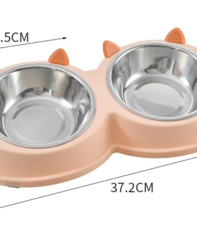 TaraPet Double Bowl Detachable Stainless Steel Bowl, Pet Feeder for Cats and Small Dogs (Orange)