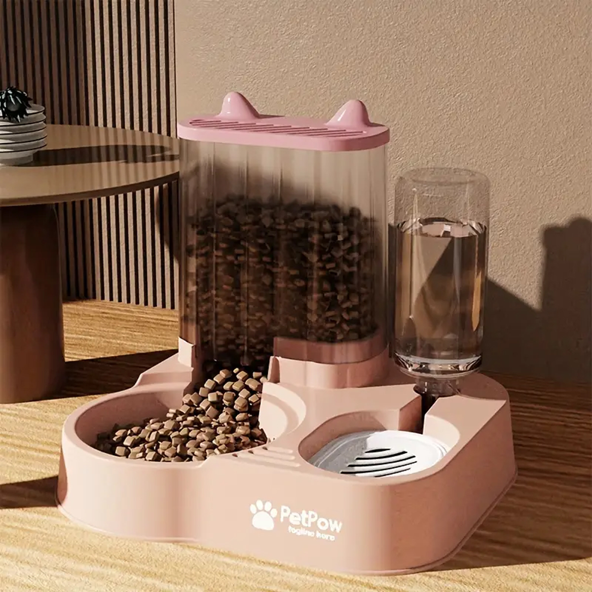 The 2.3L Automatic Dry Food Feeder and 1.3L Water Dispenser Set features a gravity feeding system, providing a continuous supply of food and water for your pets without the need for electricity. This non-electric pet bowl is ideal for cats and dogs, offering a convenient, space-saving design that simplifies feeding and hydration. Perfect for busy pet owners, it ensures your furry friends are always well-fed and hydrated.