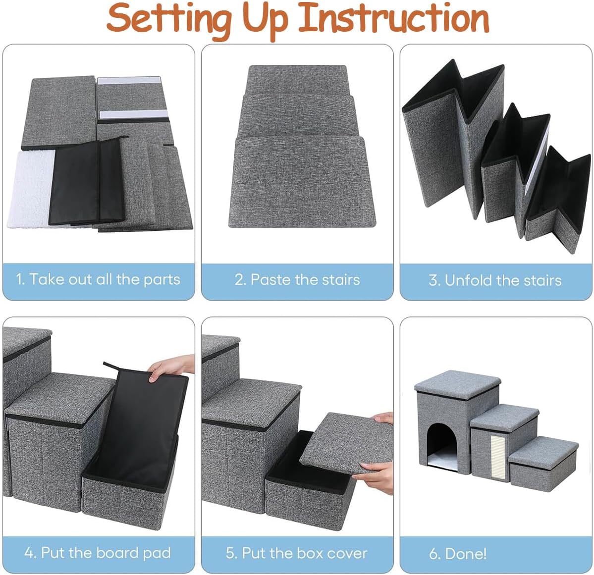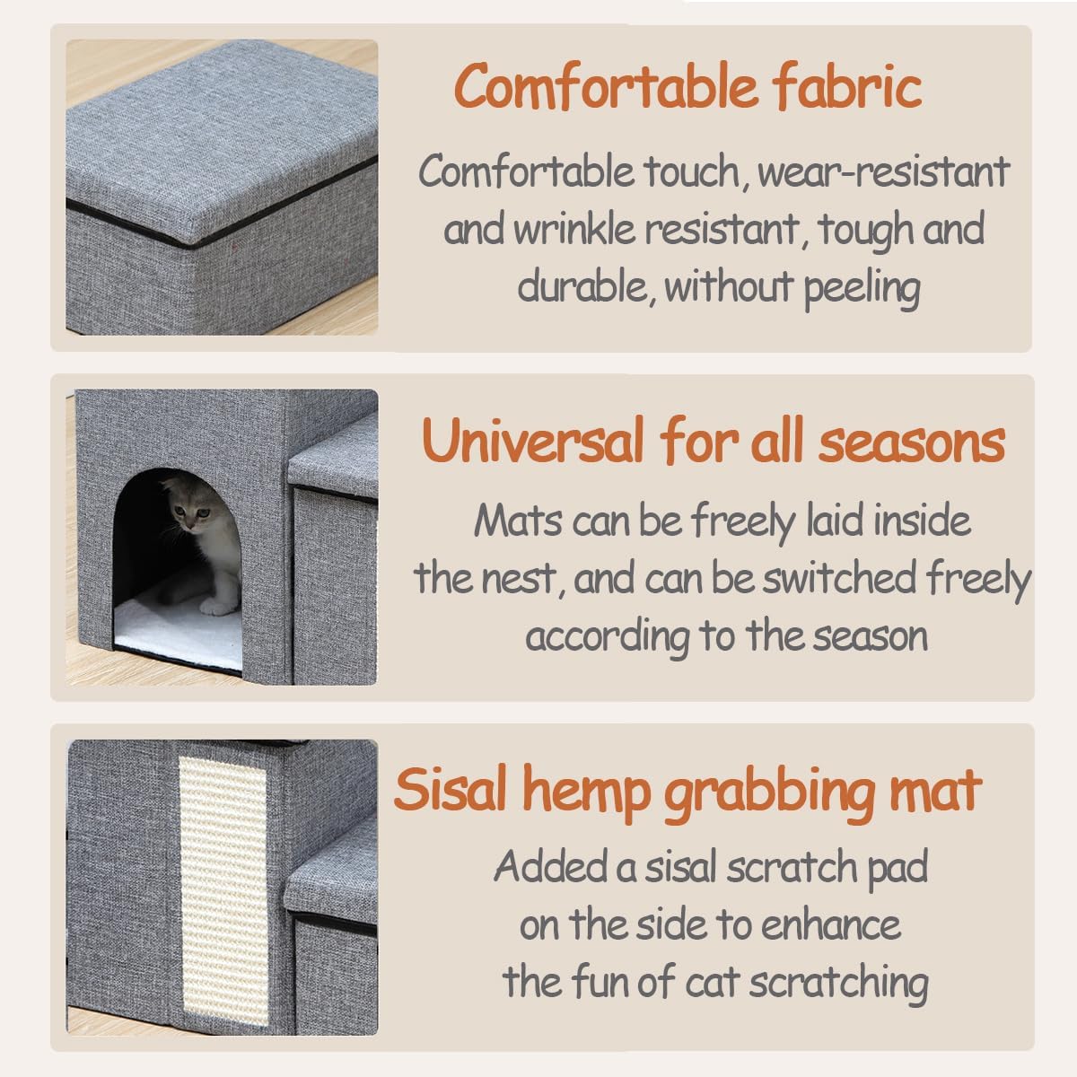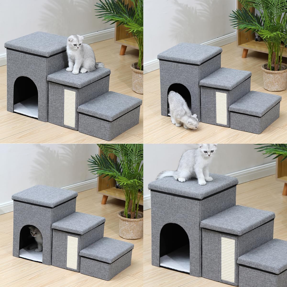 TaraPet 3-Step Foldable Storage Indoor Cat Steps,Pet Steps for High Bed Sofa,Non-Slip Cat Stairs Steps with Storage, Condo & Scratcher for Cats