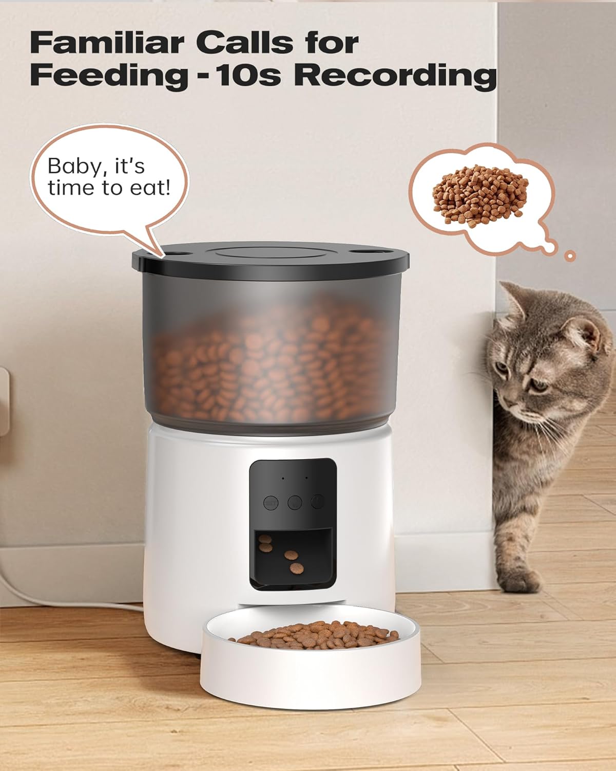 n- Personalized Voice Recording: Record a 10-second voice message to call your cat to meals, giving them comfort and familiarity.