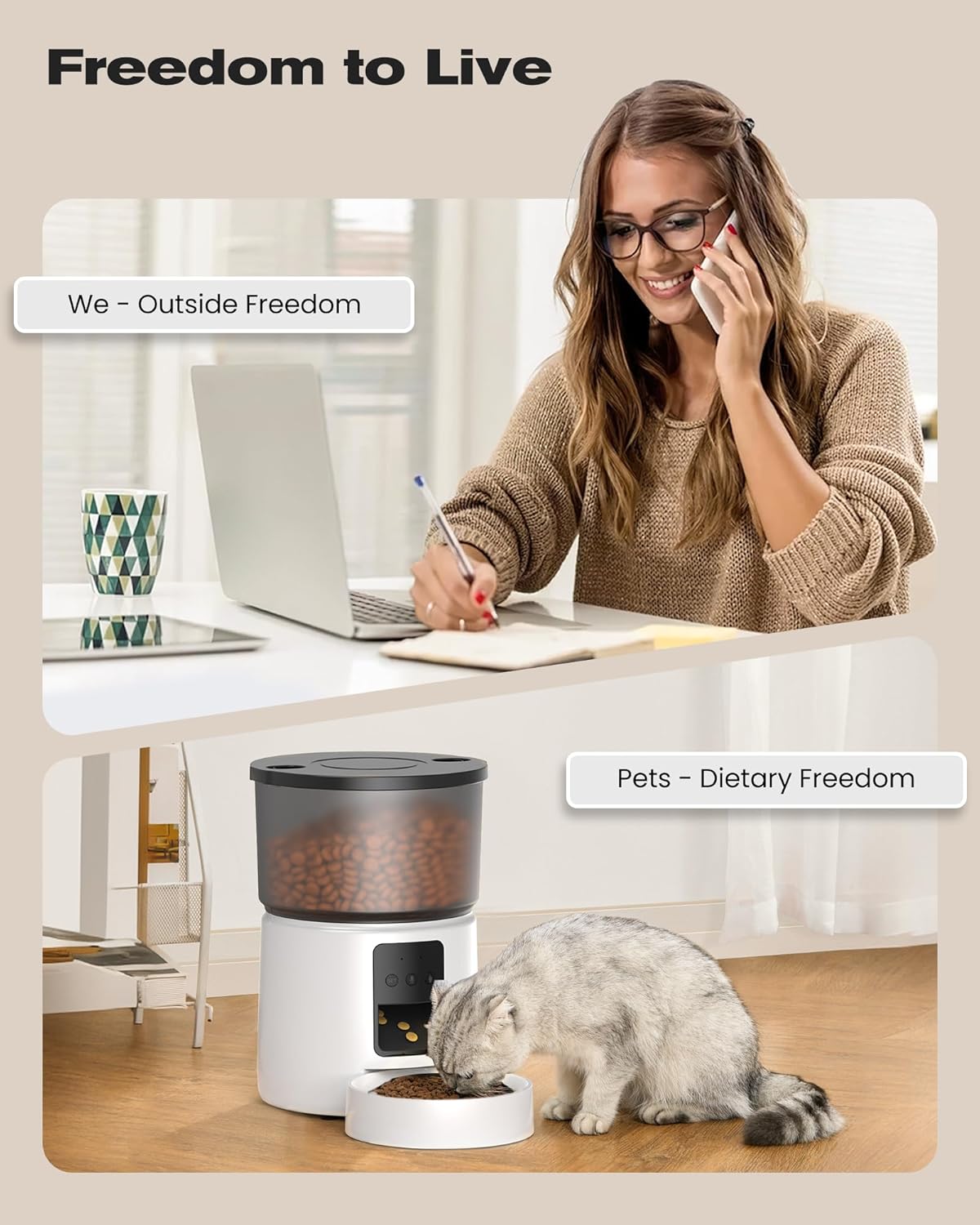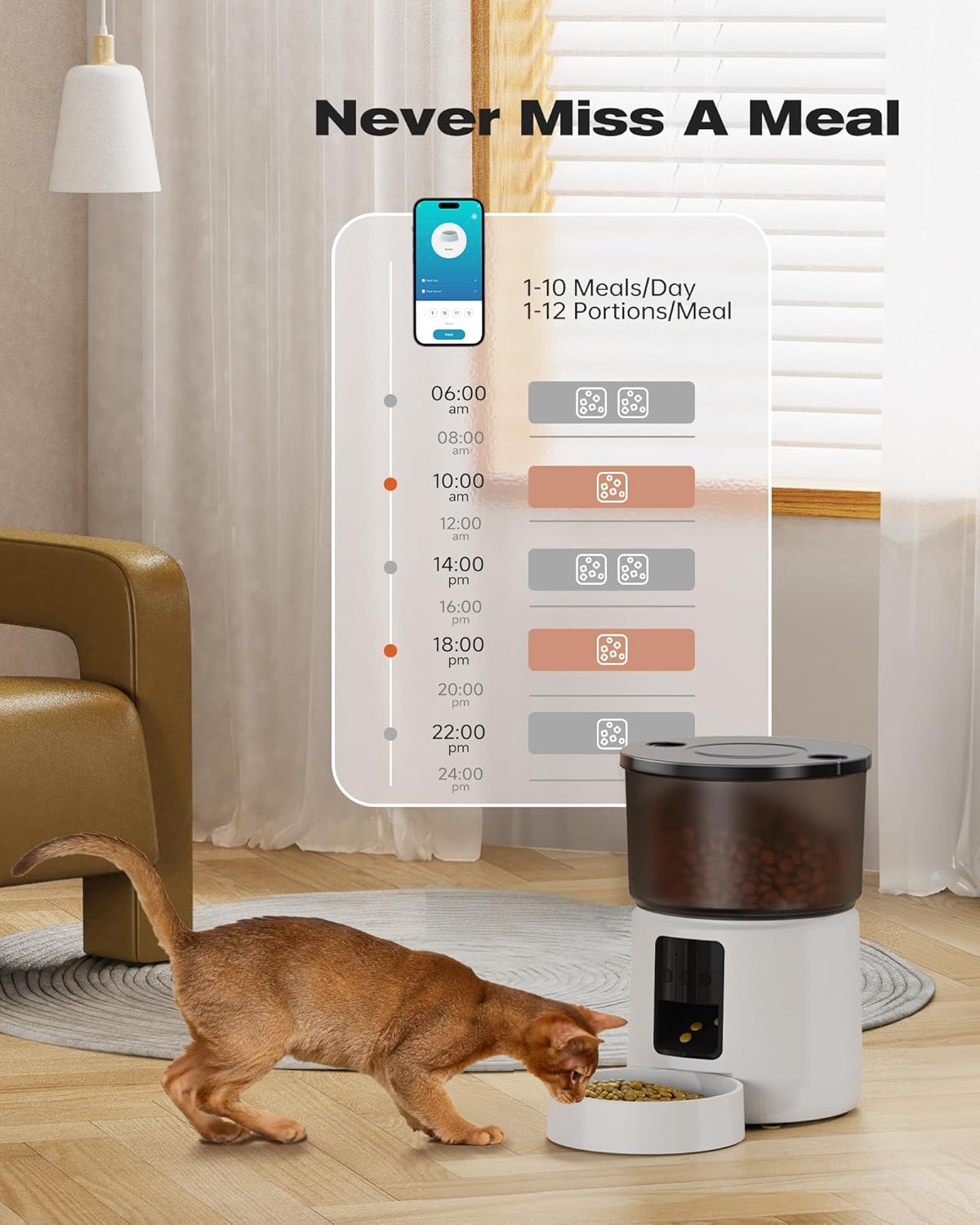 n- 3L Capacity: Provides up to 15 days of food, allowing your cat to eat on time while you’re away.