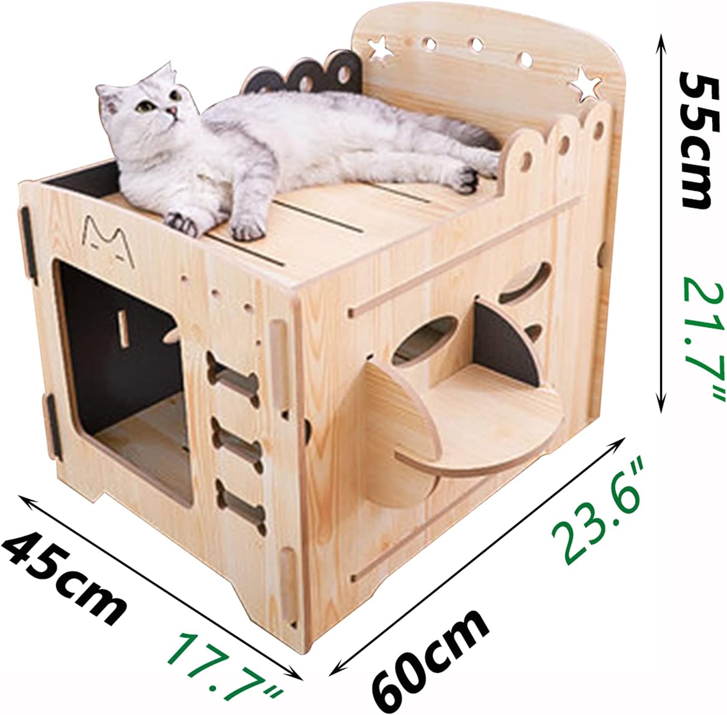 TaraPet Bed on Multiple Levels, Cat Bed, Pet Bunk Bed for Small Cats, Multifunctional Indoor Wooden Pet Multi-Level Apartment, 60 x 45 x 55 cm