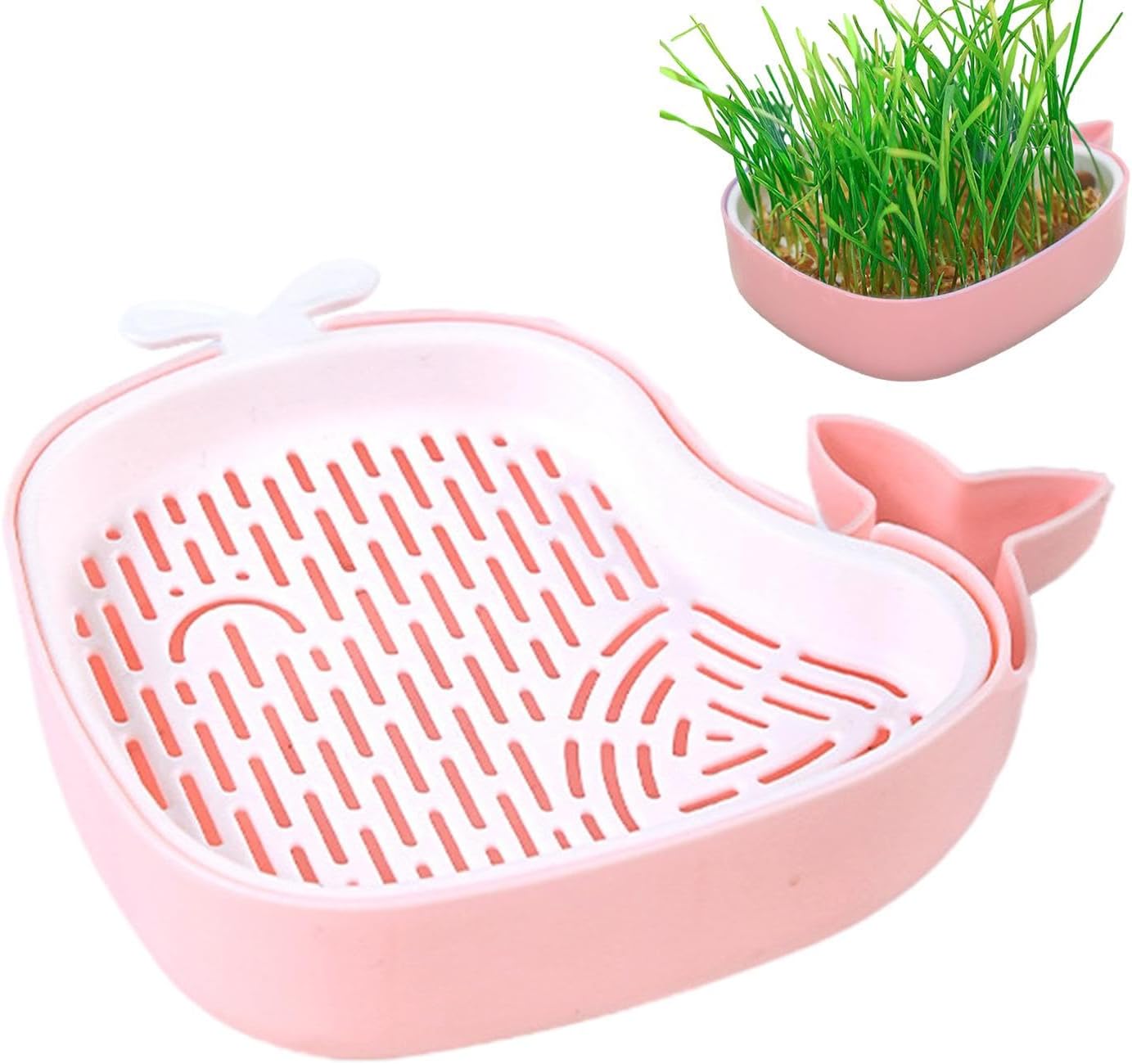 TaraPet Cat Grass Pot, Layered Design Cat Graft Pot in Whale Shape, Soilless Planter for Hydroponics Cat Grass (Pink)