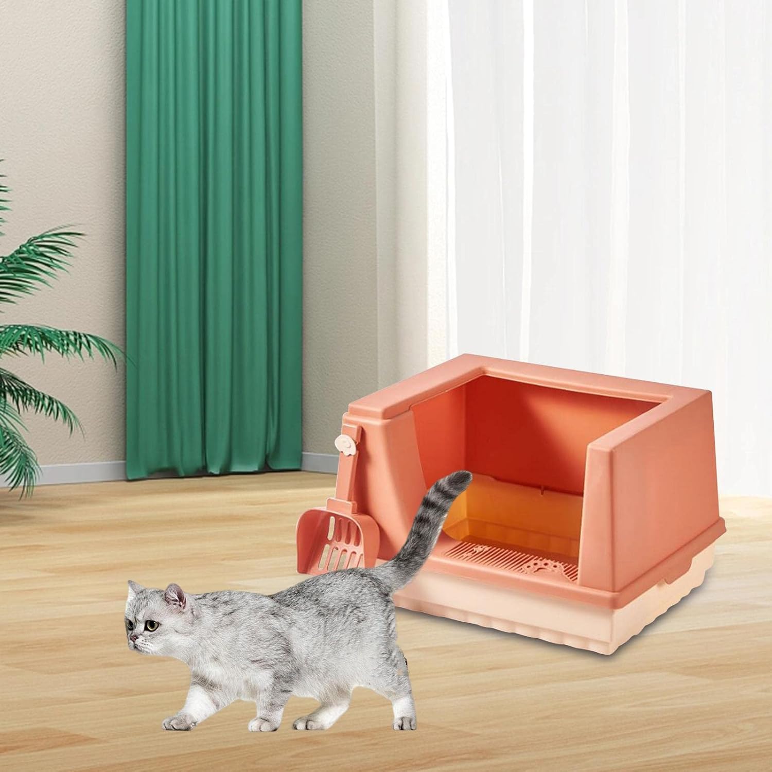 n- Easy to Clean: Includes a matching litter scoop and features a polished interior with a double-layer separation design for effortless cleaning.