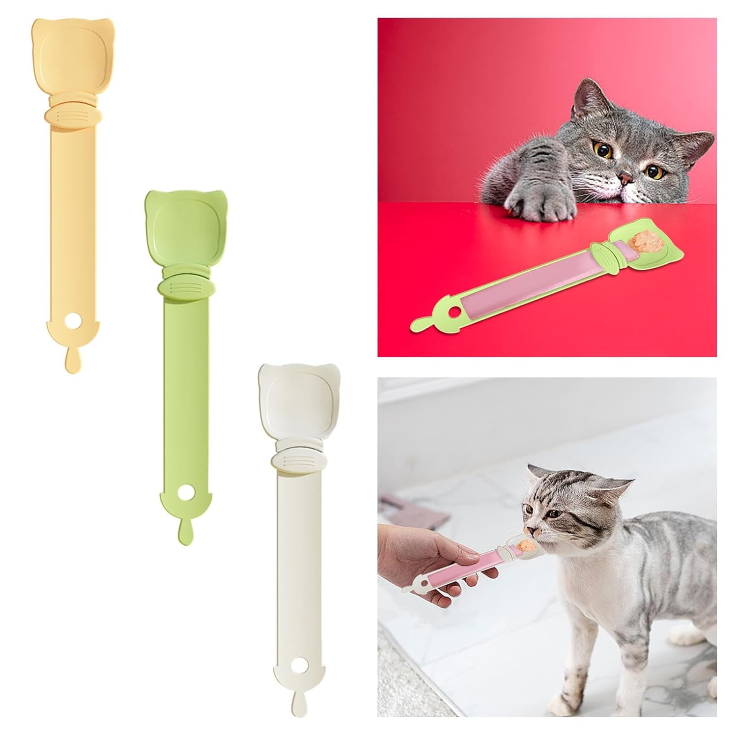 n- Multifunctional Design : Serves as both a cat food dispenser for strips and purees, and a regular spoon for wet cat food, soups, or snacks.