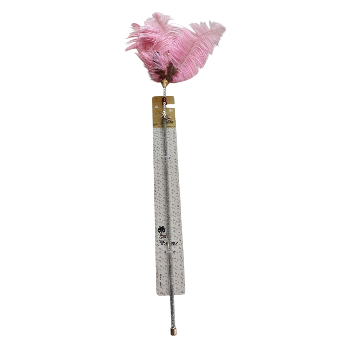 TaraPet Fanshaped Feather Plastic Pole Cat Teaser Interactive Cat Toy (Pink)
