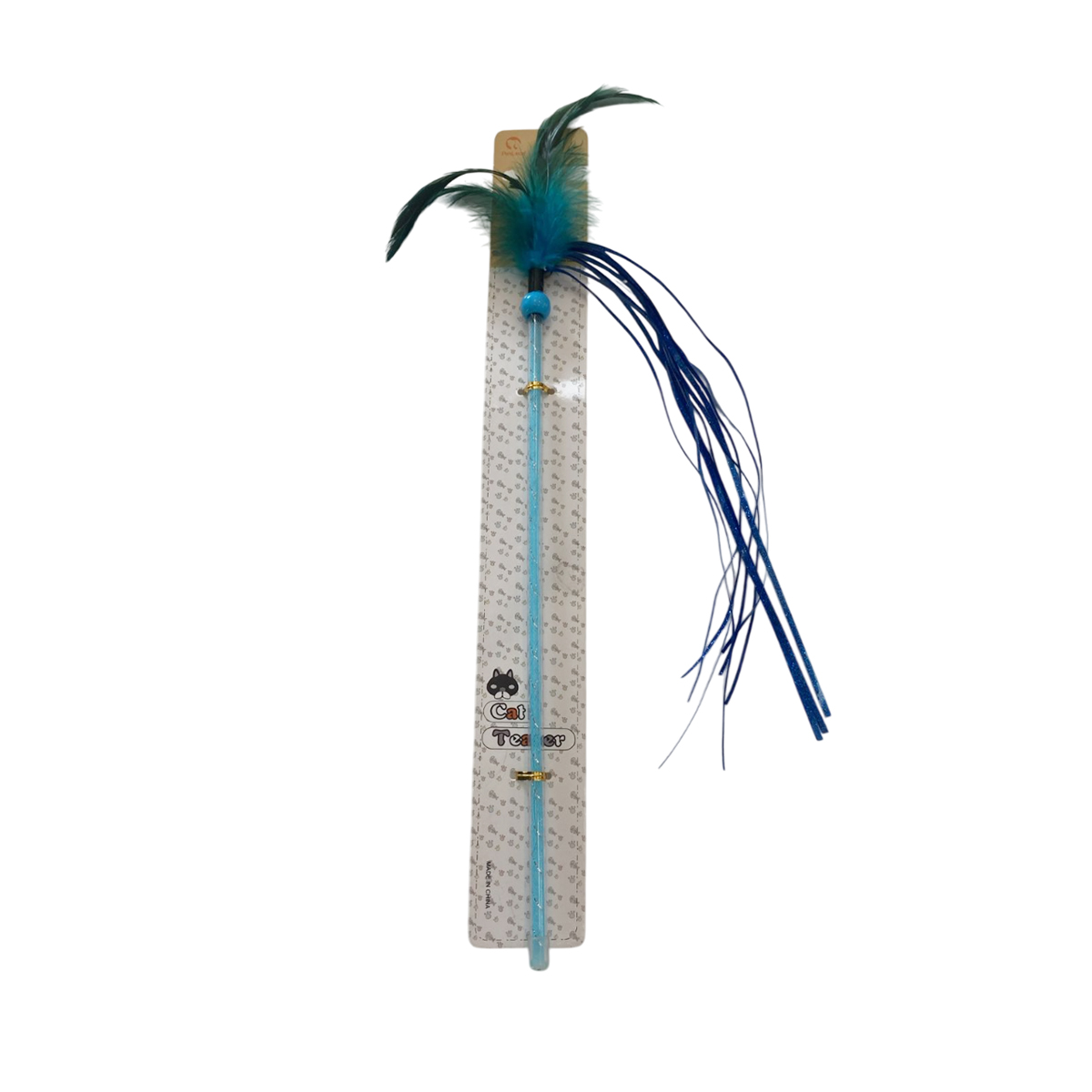 TaraPet Feather Ribbon Plastic Pole Cat Teaser Interactive Wand Toy (Blue)