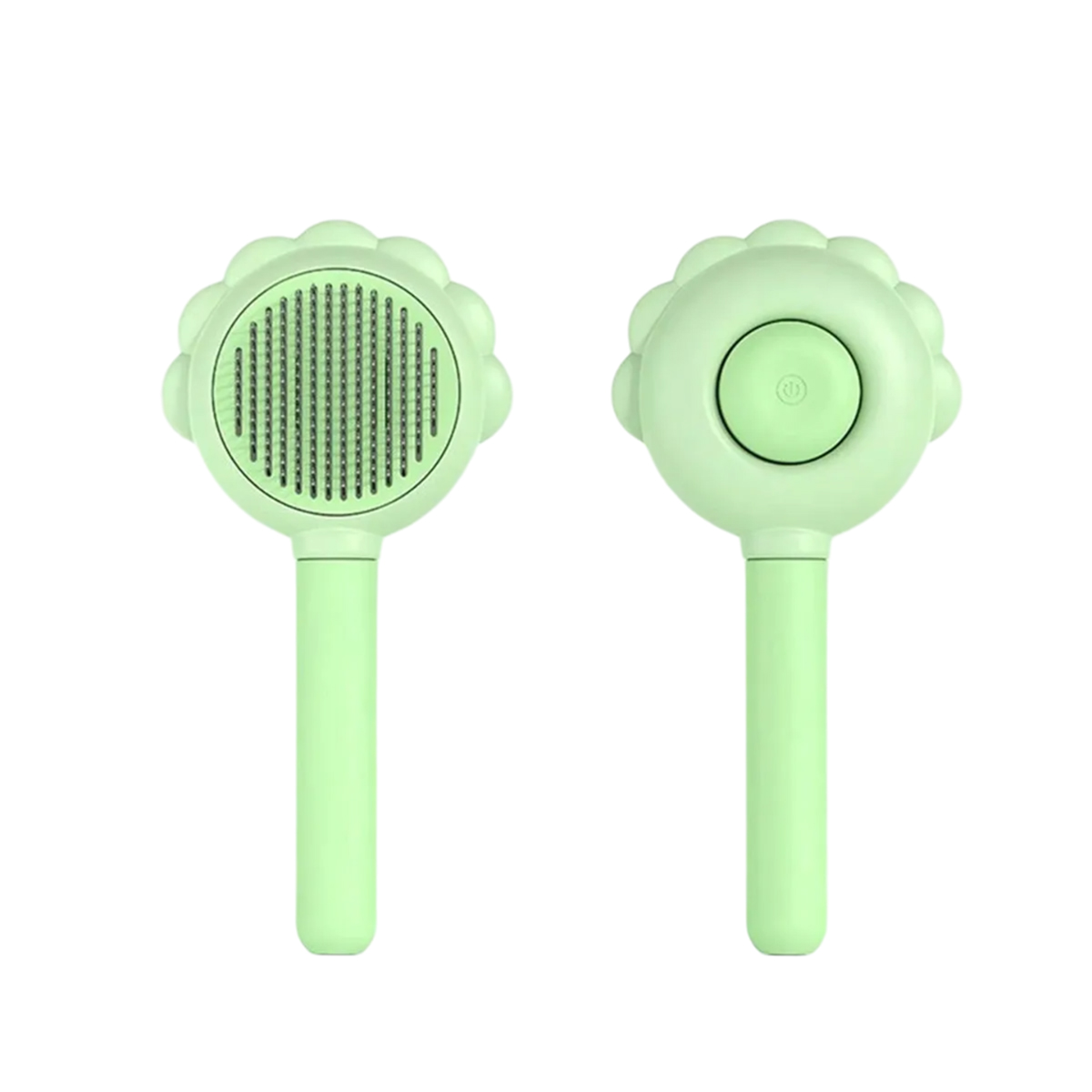 TaraPet Flower Shape Pet Massage Spray Brush, Stainless Steel Pointed, Soft and Comfortable Handle, for Removing Shedding Hair (Green)