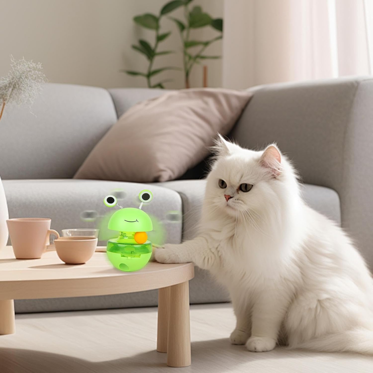 This interactive cat toy features a detachable design for easy storage and cleaning. It dispenses treats as cats roll or push the toy, providing hours of exercise and entertainment. Made from durable, lightweight PP material with smooth edges, it?s perfect for single or multiple cats to enjoy together.