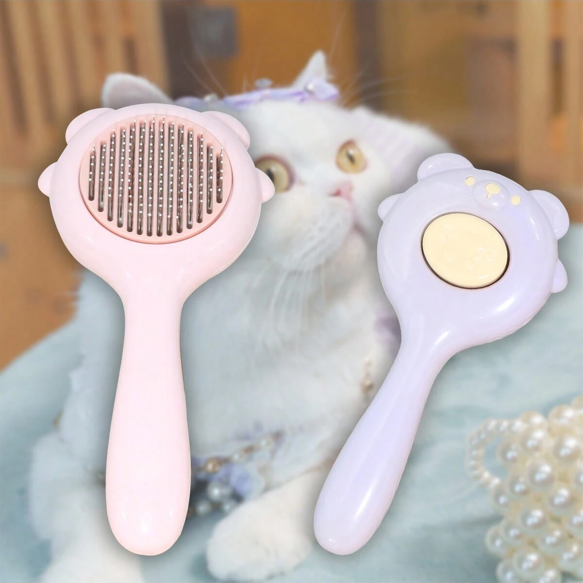 n• Cleaning Cat Brush: The round protective covers on the metal pins ensure a safe and comfortable massage, preventing skin irritation during grooming.