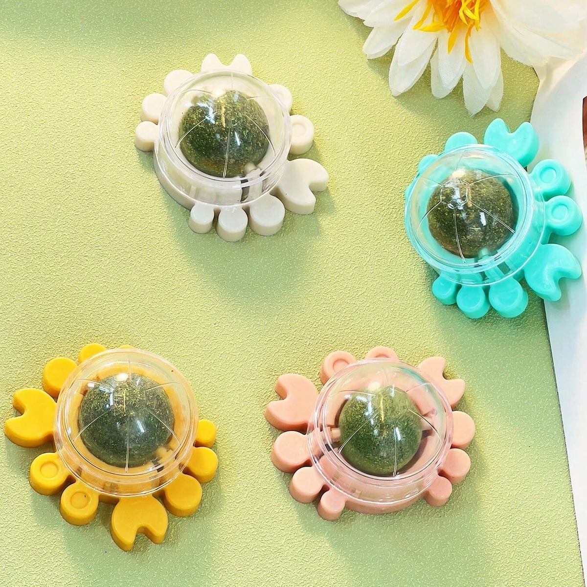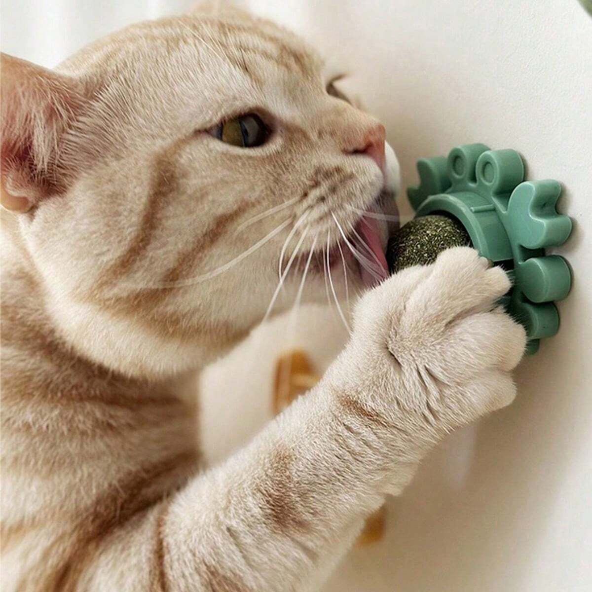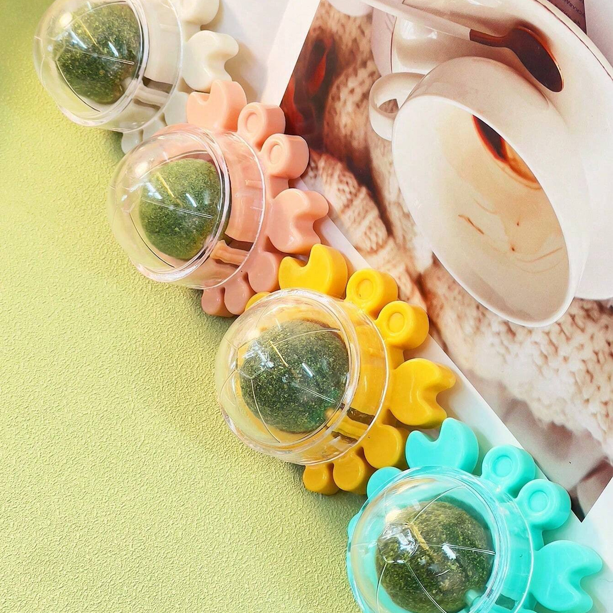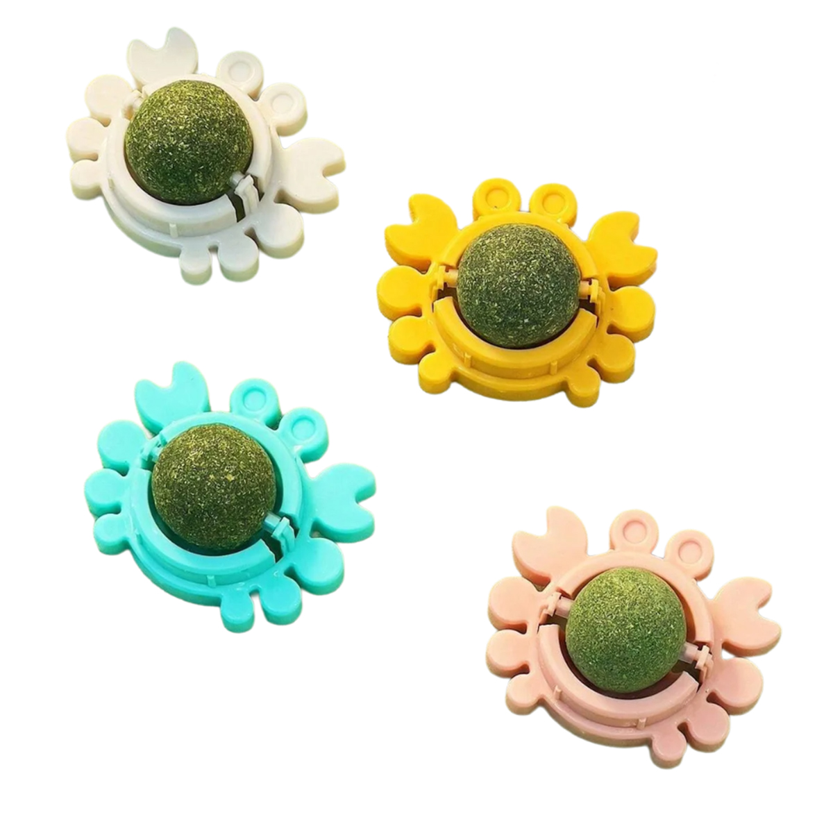 Keep your cat entertained and healthy with these 360-degree rotating catnip balls. Made from 100% natural materials, they help clean teeth, freshen breath, and provide essential nutrients. Easy to install and safe for your cat, this toy is perfect for preventing boredom.