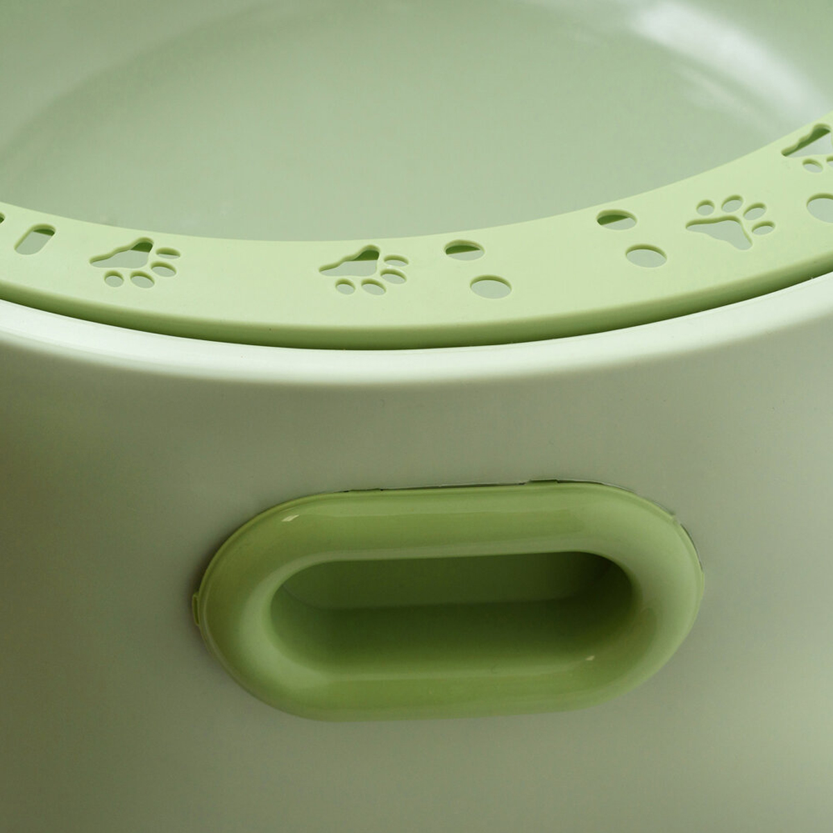 TaraPet Large Round Cat Litter Box with High Rim, Paw Prints, and Side Handles ? Durable PP Material with Cleaning Scoop ? 49 cm Diameter, 24 cm Height (Green)