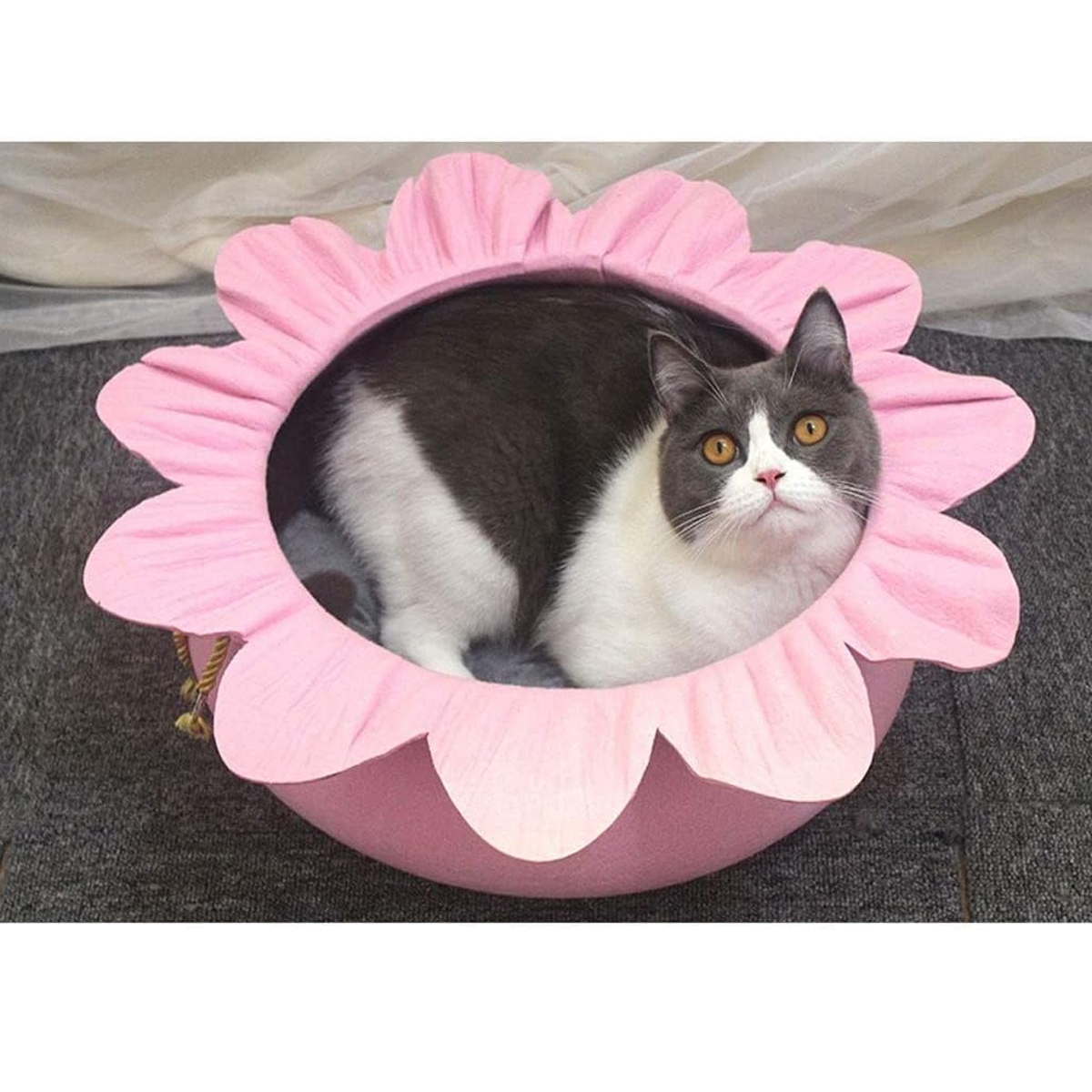 n- Sunflower Shape: Designed in a charming sunflower shape, perfect for cats who love tight spots, while also serving as a lovely room decoration.