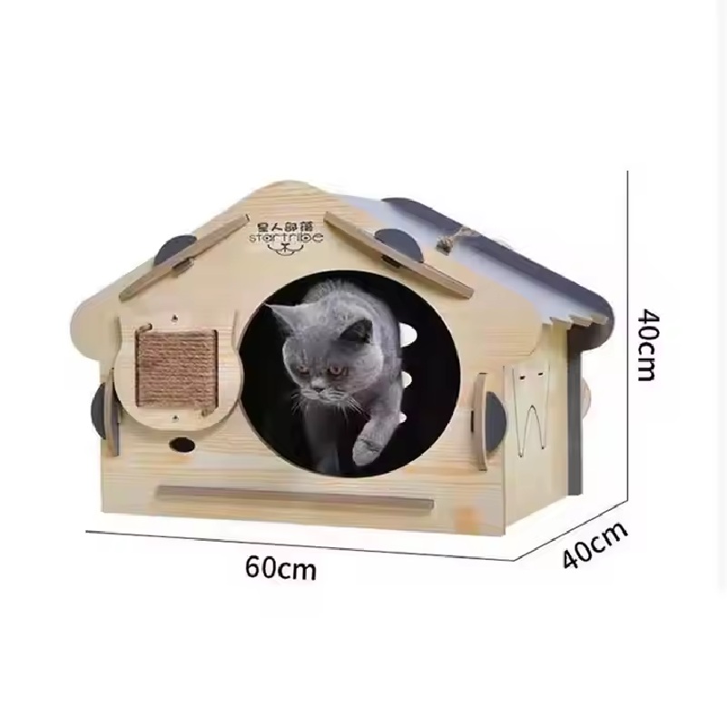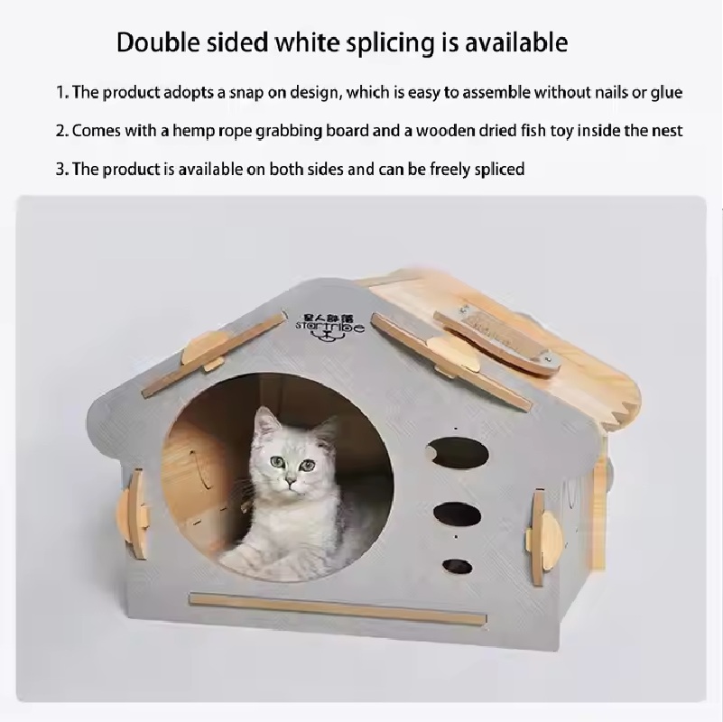 This Large Cat House offers a cozy and stylish retreat for your feline friend. Made from durable MDF material, it features a playful cat-shaped design and ventilation holes for entertainment. Easy to assemble, lightweight, and portable, it?s perfect for cats of all ages to scratch, play, and nap. A modern addition to your home decor, providing comfort and fun for your pet!